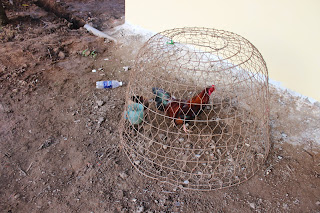 There was also this cute little rooster that I wanted to add in. He was in isolation because he was fighting with the others. Moral of this story if don't fight or you may have an upturned basket put over you.